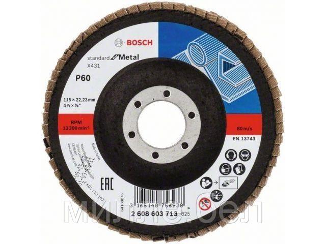 Лепестковый шлифкруг X431 BOSCH Standard for Metal 115 мм К 60, прямое исполнение — EN 13743 применяется для обработки металла.
