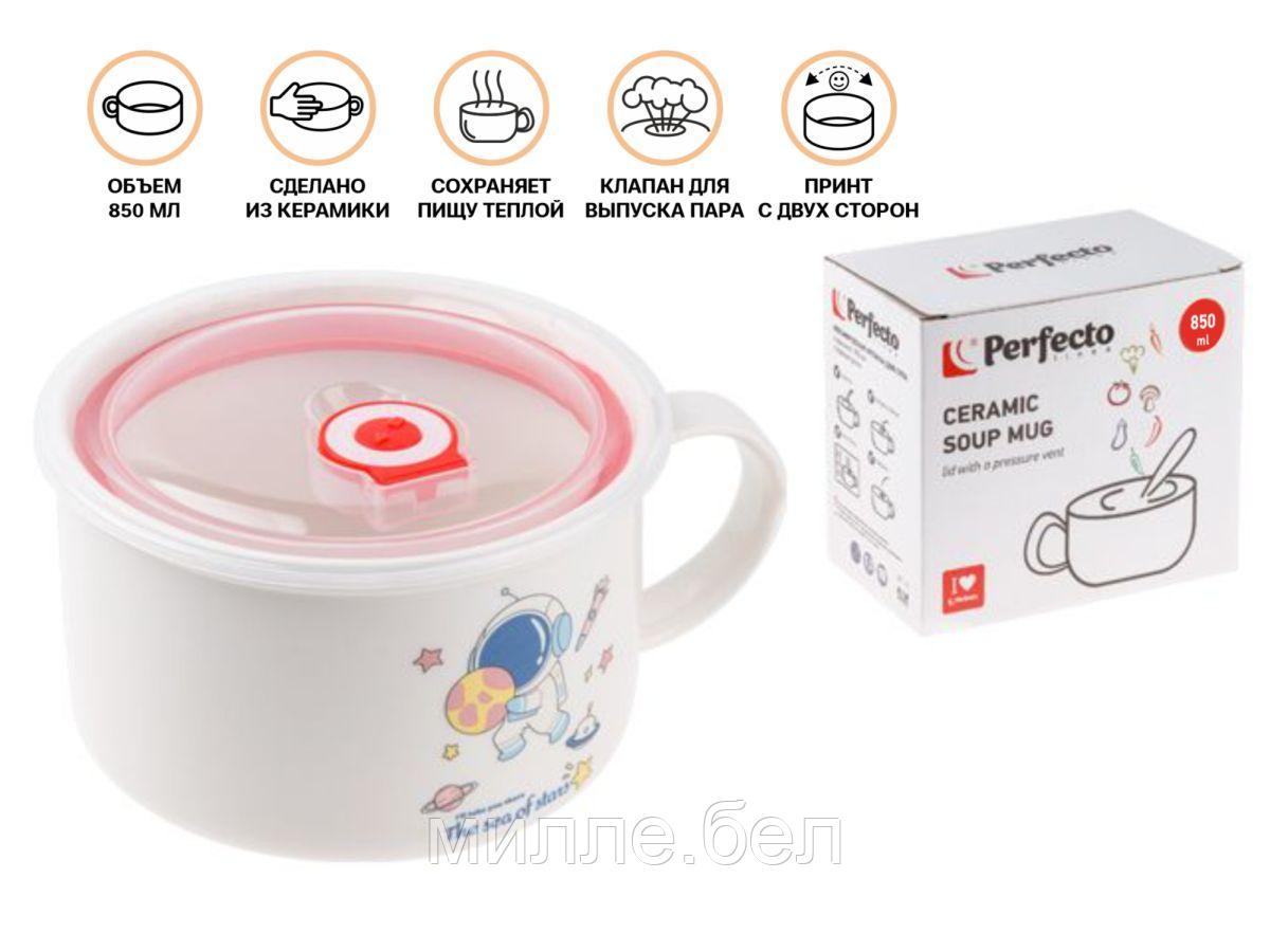 Кружка для супа с крышкой с паровыпуском, 850 мл, керамическая, COSMOS-4, PERFECTO LINEA