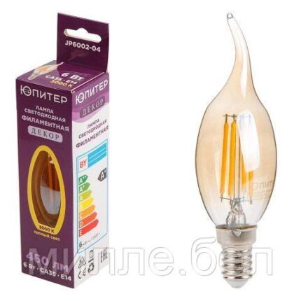 Лампа светодиодная филаментная CA35 СВЕЧА НА ВЕТРУ 6 Вт E14 3000К ЮПИТЕР ДЕКОР (60 Вт аналог лампы накал.,
