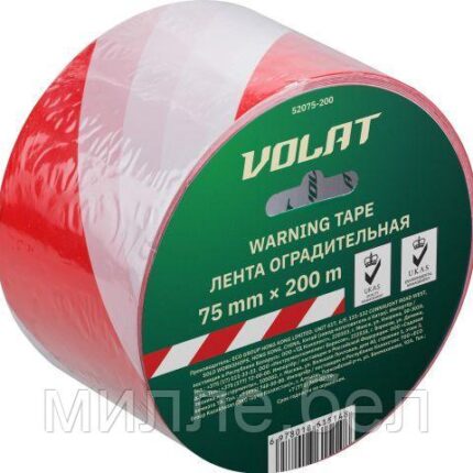 Лента оградительная 75ммх200м ВОЛАТ (сигнальная, красно-белая, не клейкая)
