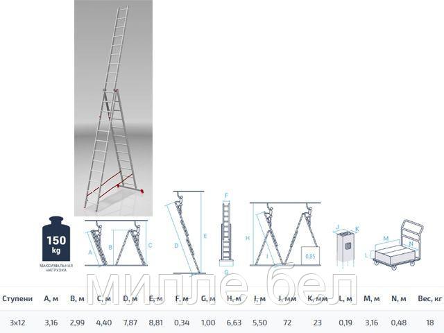 Лестница алюм. 3-х секц. 300/786/318см 3х12 ступ., 16,8кг PRO STARTUL (ST9942-12)