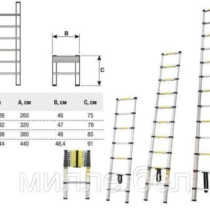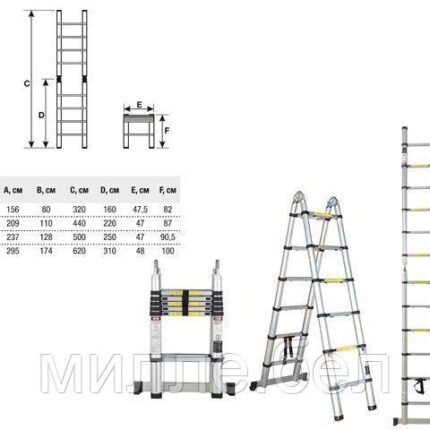 Варианты использования: приставная лестница, приставная выдвижная лестница (двухсекционная и трехсекционная), стремянка с выдвижной секций