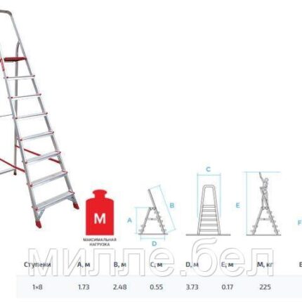 Лестница-стремянка алюм. проф. 173 см 8 ступ. 7,9 кг NV3110 Новая Высота (макс. нагрузка 225кг)