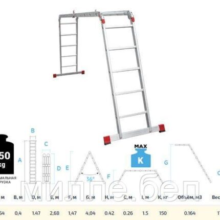 Лестница алюм. многофункц. трансформер 4х5 ступ., шир. 400 мм, 16,8кг NV3320 Новая высота (Без настила.