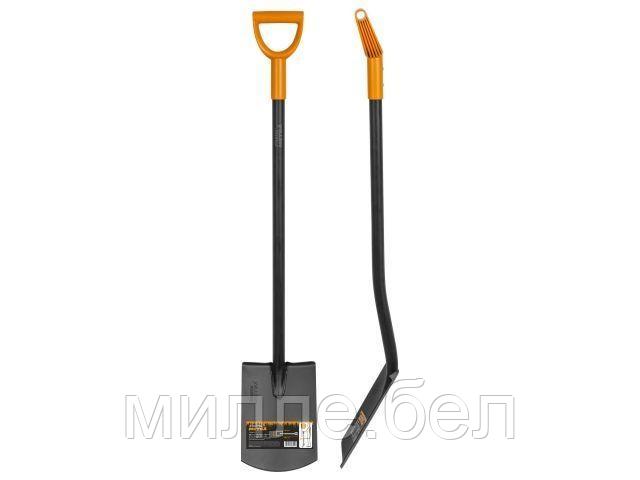 Эргономика: конструкция лопаты позволяет садоводу сохранить правильное положение тела в процессе работы. Угол подъема в 26 градусов минимизирует нагрузку на спину и плечи,