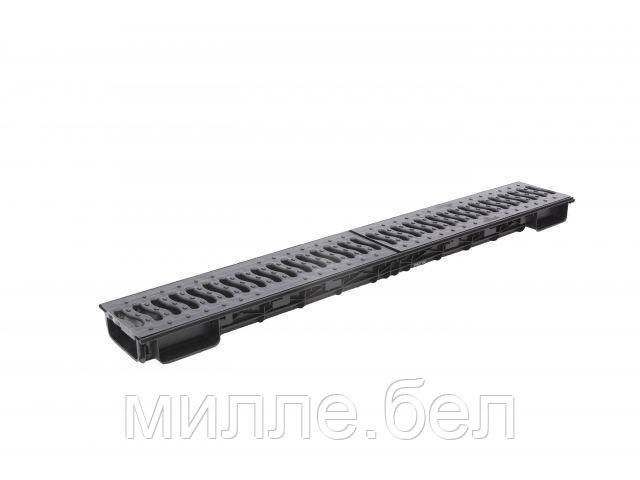 Канал пластиковый системы Lite из вторичного ПЭ-ПП. Сформированное отверстие для подключения труб 110 для выпуска через дно лотка. Специальный паз для подключения других лотков под углом 90? и специальным пазом для распила лотка. Полипропиленовая щелевая решетка.Безвинтовое крепление решетки . Класс нагрузки А 15.