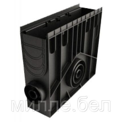 Канал пластиковый системы STANDART из вторичного ПЭ-ПП. Сформированное отверстие для подключения труб O 50 мм., O 110 для выпуска через дно лотка. Специальный паз для подключения других лотков под углом 90? и специальным пазом для распила лотка. Класс нагрузки А 15- С 250.