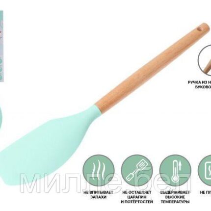 Лопатка силиконовая, 32 х 6 см, EcoVillage, бирюзовая, PERFECTO LINEA