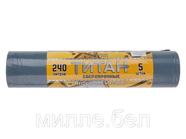 Мешки для мусора, 240 л, 5 шт, «Титан», серо-черные, РОМАШКА (100х130см/80мкм)