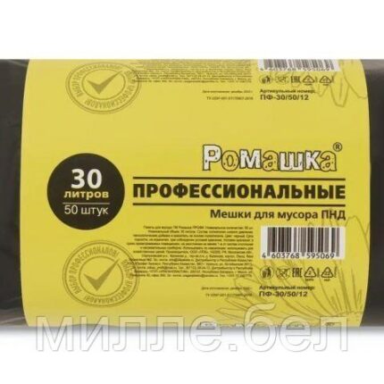 Мешки для мусора НАДЕЖНЫЕ (30 шт, 35 л, желтыес ушками) Ромашка ВЛ04030У используются для хозяйственных нужд в домашнем хозяйстве, в офисе, в производственных и торговых помещениях, индустрии клининговых услуг, красоты и здоровья.