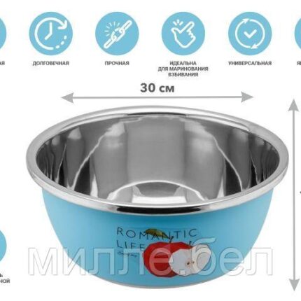 Миска для взбивания из нержавеющей стали, диаметр 30 см, яблоко, серия Romantic life, PERFECTO LINEA
