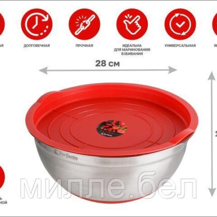 Миска для взбивания из нержавеющей стали, диаметр 28 см, с крышкой, серия CHEF, PERFECTO LINEA