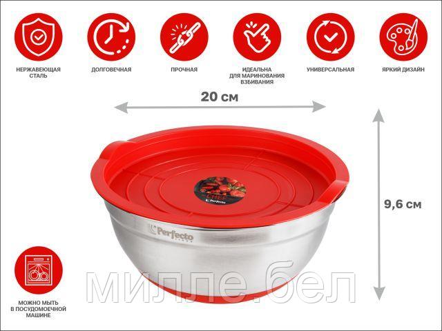 Миска для взбивания из нержавеющей стали, диаметр 20 см, с крышкой, серия CHEF, PERFECTO LINEA
