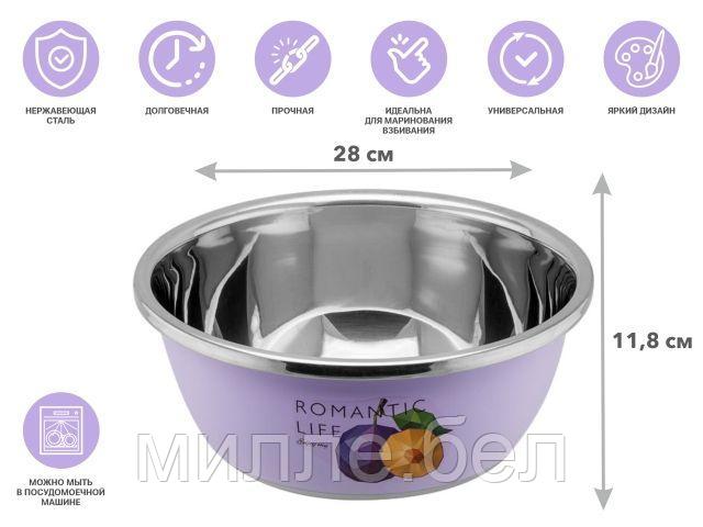 Миска для взбивания из нержавеющей стали, диаметр 28 см, слива, серия Romantic life, PERFECTO LINEA