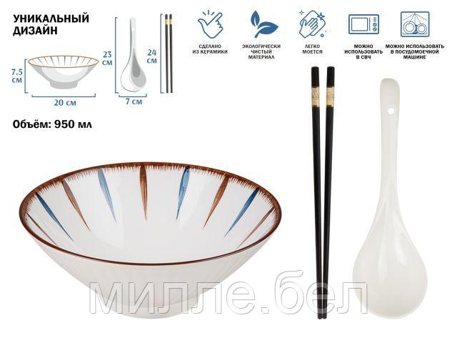 Миска керамическая с ложкой и палочками для еды, серия RAMEN, line, PERFECTO LINEA