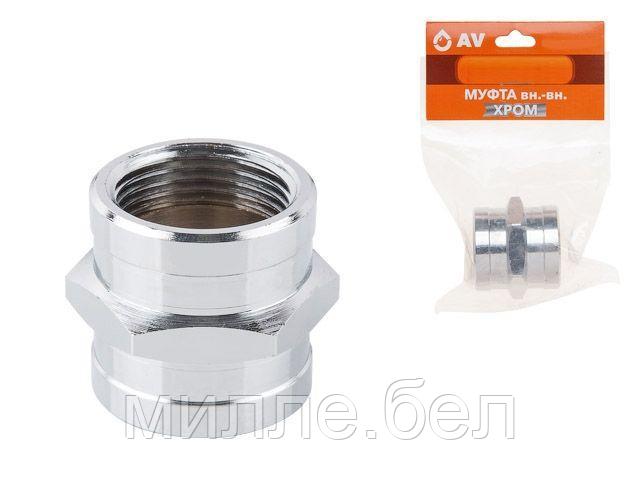 Муфта 1″ вн.-вн. ХРОМ, AV Engineering (инд. упак.) (Латунь, макс. 16 бар, макс. 110 °С)