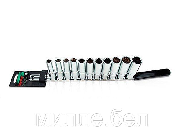 Набор головок 1/2″ 10-22мм 12гр. глубокие 11шт на подвесе TOPTUL