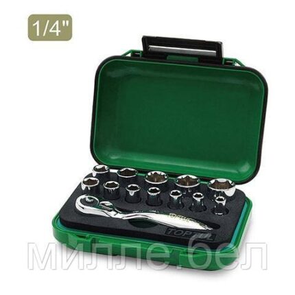 Набор торцевых шестигранных головок и бит TOPTUL на 14 и 12 состоит из 108 предметов. Рекомендуется для профессионального использования.