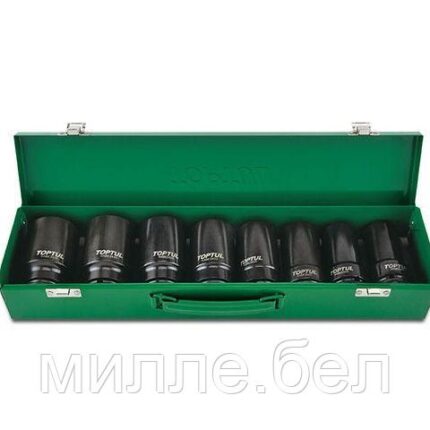 Набор головок ударных 12 TOPTUL включает в себя 10 шестигранных головок, изготовленных из хром молибденового сплава. Используется как оснастка для гайковертов. Динамический профиль рабочей части головок сохраняет прочность граней болтов и гаек, так как основное усилие приходится на центр грани. Рекомендуется для профессионального использования. Размеры металлического кейса: 303Х45Х47 мм.