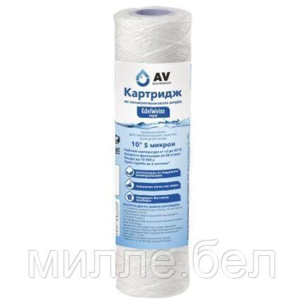 Картридж из полипропиленового шнура 10″ 5 микрон, AV Engineering (Картридж механической очистки.)