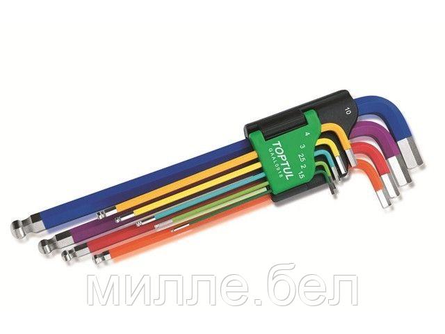Набор ключей шестигр. 1,5-10мм 9шт экстра-длин.с шар. цветные TOPTUL
