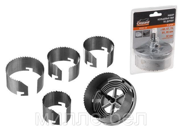 Набор кольцевых пил по дереву 60-95мм 5 предметов GEPARD (GP2201-05) (коронка по дереву, набор пильных венцов)