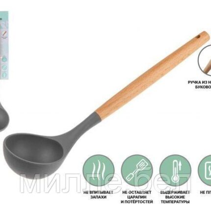 Назначение: для приготовления пищи Материал: силикон нейлон, ручка- бук Размер: 31,5х7,5 см Цвет: серый Черпак — простой и необходимый помощник