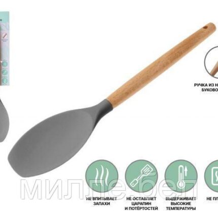 Назначение: для приготовления пищи Материал: силикон нейлон, ручка- бук Размер: 32х7 см Цвет: серый Кулинарная ложка — простой и необходимый