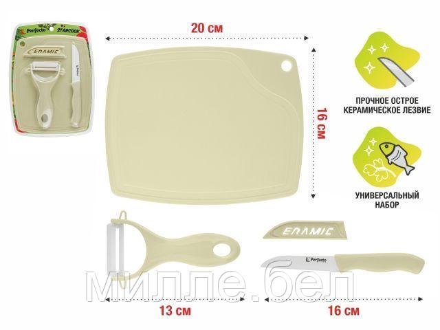 Набор кухонный (нож кух.16см,нож для овощей 13см, доска разделочн.16х20см), STARCOOK, PERFECTO LINEA