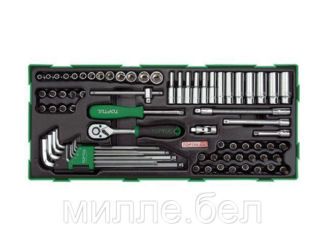 Главная Ручной инструмент Слесарно-столярный инструмент Наборы-сеты для тележек и ящиков Набор-сет головок с принадлежностями 72предм. TOPTU (TOPTUL)