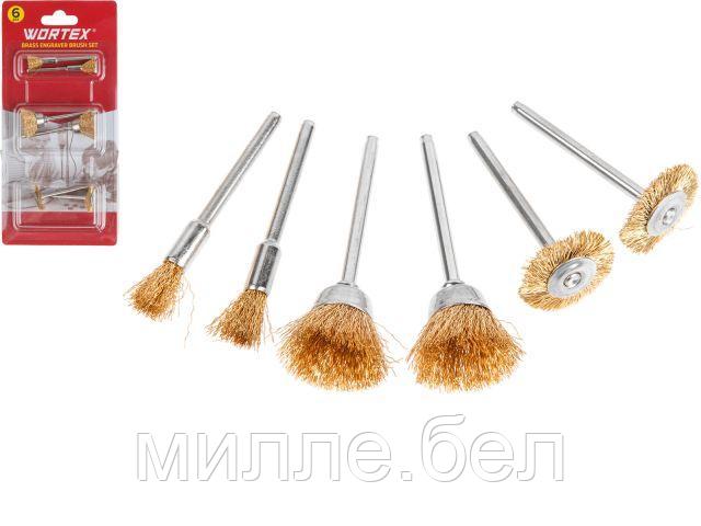 Набор щеток для гравера латунных WORTEX (6 шт. в блистере, хвостовик 3 мм)