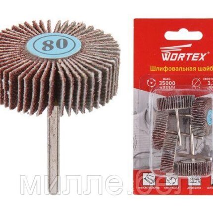 Шлифовальная шайба 32 мм WORTEX (раб. диам. 32 мм, диам. хвостовика 3.2 мм, зерно 80, 35000 об/мин)