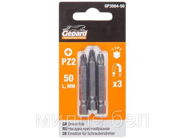 Насадка крестообразная PZ2 50мм 3шт GEPARD (GP3504-50) (бита Pozidrive позидрив сталь S2 магнитная)
