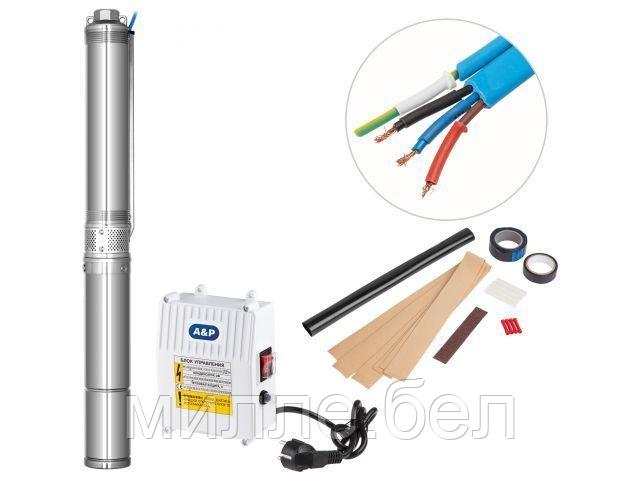 Насос скважинный центробежный AGELESS-3-3600/62-4/20-A A&P (920 Вт, 5,4 м3/ч, 82м, 3″ / 7,62 см)