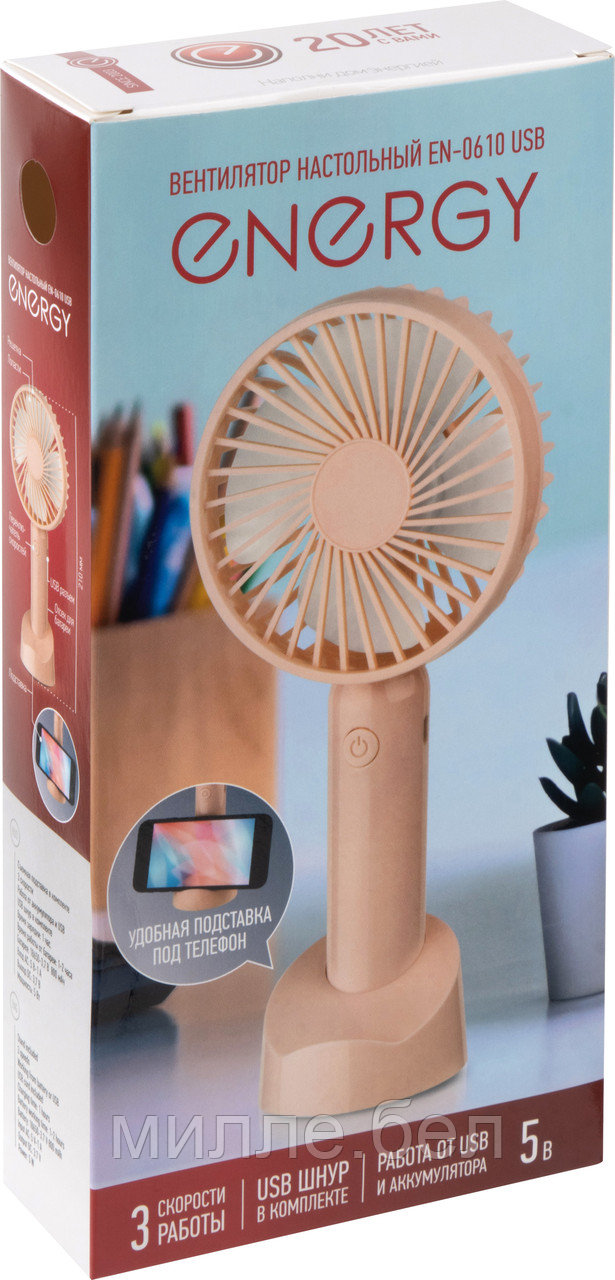 Настольный вентилятор Energy EN-0610 розовый (4 Вт) 1 шт/кор.