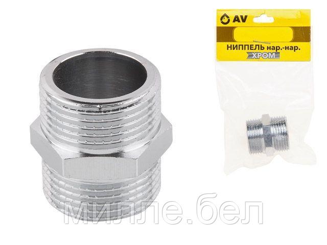 Ниппель 1″ нар.-нар. ХРОМ, AV Engineering (инд. упак.) (Латунь, макс. 16 бар, макс. 100 °С)