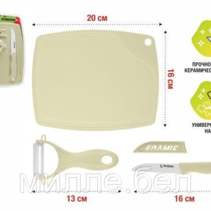 Набор кухонный (нож кух.16см,нож для овощей 13см, доска разделочн.16х20см), STARCOOK, PERFECTO LINEA