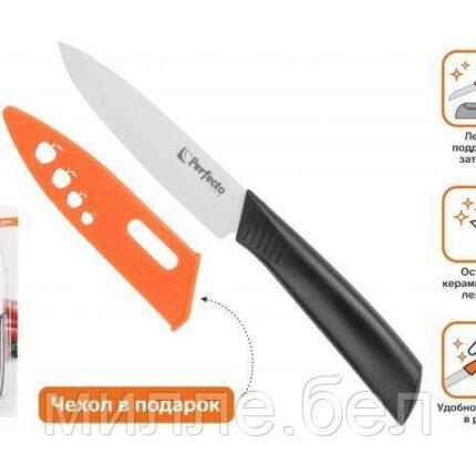 Нож кухонный керамический 10.5см + чехол в подарок, серия Handy (Хенди), PERFECTO LINEA (Длина лезвия 10,5 см,