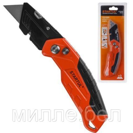 Нож универсальный складной с трапец. лезвием STARTUL PROFI (ST0950) (3 сменных трапециевидных лезвия в