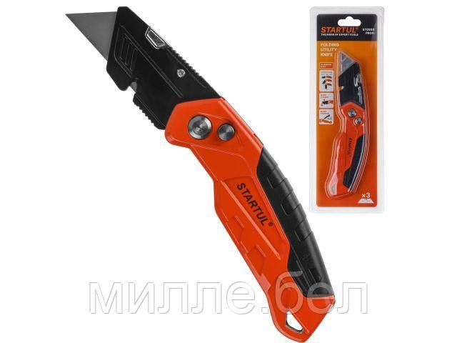 Нож универсальный складной с трапец. лезвием STARTUL PROFI (ST0950) (3 сменных трапециевидных лезвия в