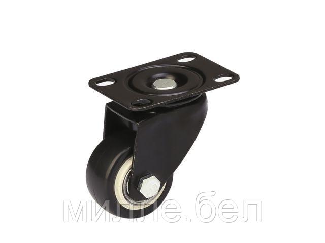 Мебельное колесо диаметром 40 мм, поворотное, на площадке. Имеет цельнометаллический корпус и подшипник.