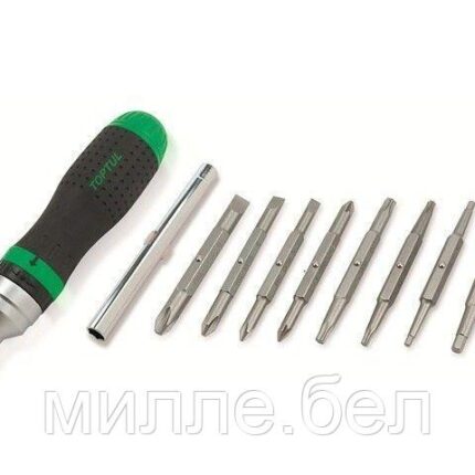 Отвертка реверсивная + биты + адаптер под головки 1/4″ 8в1. TOPTUL