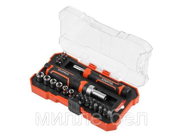 Отвертка реверс. с набором головок и бит 28пр. STARTUL PROFI (ST3095-28)