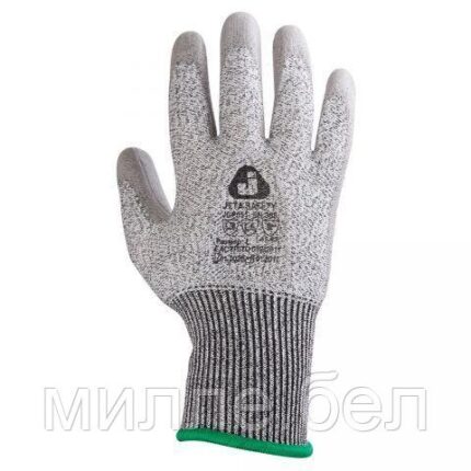 Перчатки с защитой от порезов 3 кл., р-р 9/L, (полиурет. покрыт.) серые/белые, JetaSafety (перчатки