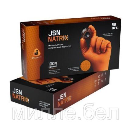 Перчатки нитриловые, р-р 8/М, оранж., уп. 25 пар, JetaSafety (Ультрапрочные) (JETA SAFETY)