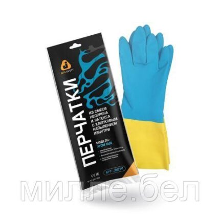 Перчатки К80 Щ50 неопреновые Atom Duo хозяйственно-промышленные, р-р 7/S желто-голубые, JetaSafety