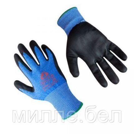 Бесшовная перчатка из высокопрочных нитей полиэтилена. 13 класс вязки. Эластичная манжета для надёжного удержания на запястье. Тыльная сторона ладони без покрытия — позволяет коже дышать. Полиуретановое покрытие на ладони и пальцах устойчиво к работе с жирными и масляными деталями. Высокая стойкость к износу.