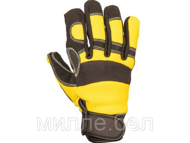 Перчатки виброзащитные из синтетической кожи, Vibro Pro, р-р 10/XL, черно-желтые, JetaSafety (шов: кевлар)