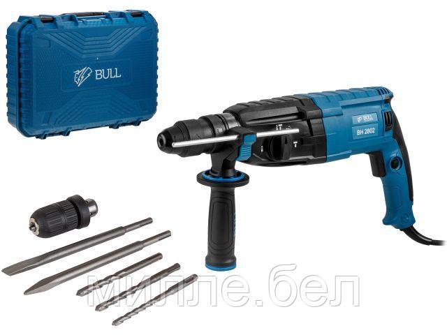 Перфоратор BULL BH 2802 в чем. 850 Вт, 3.2 Дж, 28 мм, 4 реж. + 2 зубила, 3 сверла, БЗП в комплекте (ОТГРУЗКА