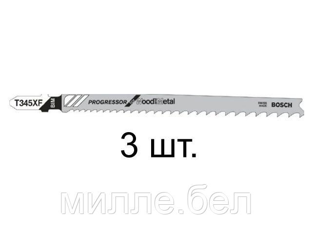 Пилка лобз. по дереву с гвоздями T345XF (3 шт.) BOSCH (пропил прямой, грубый, быстрый рез в материале любой